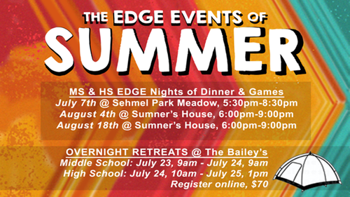Middle School Overnight will be July 24th from 9am to 9am the next morning.