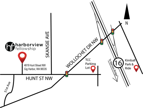 Harborview Fellowship has ample parking for Sunday Services. But for large events we may utilize overflow parking at the TCC Parking Lot, for additional parking we will use the Kimball Park & Ride with shuttle services. Look for the big red LifeWise Academy Bus.