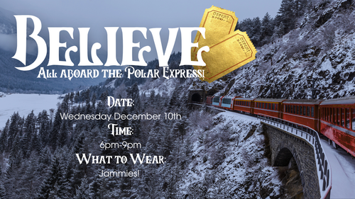 Step into the wonder of Christmas as we hop aboard the Polar Express! Your golden ticket unlocks an evening packed with hot cocoa, festive treats, games, prizes, and a dash of holiday cheer.